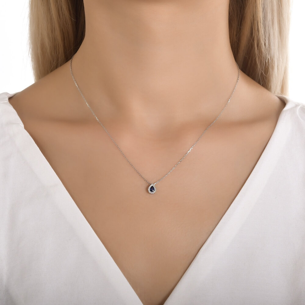 Pisara-kujuline kaelakee safiiri ja briljantidega