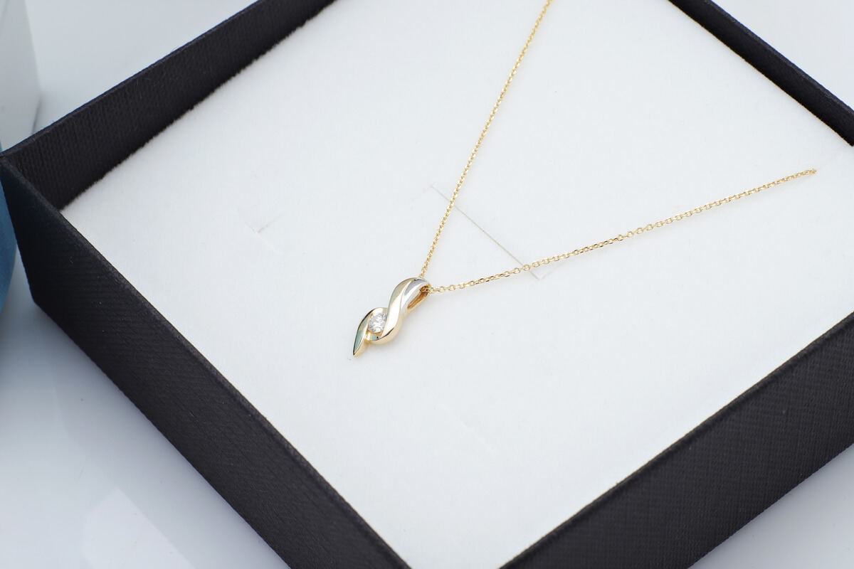 Põimitud kollasest kullast ripats teemandiga