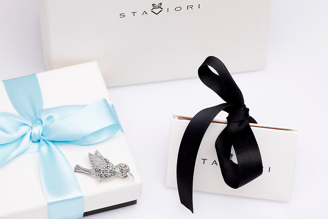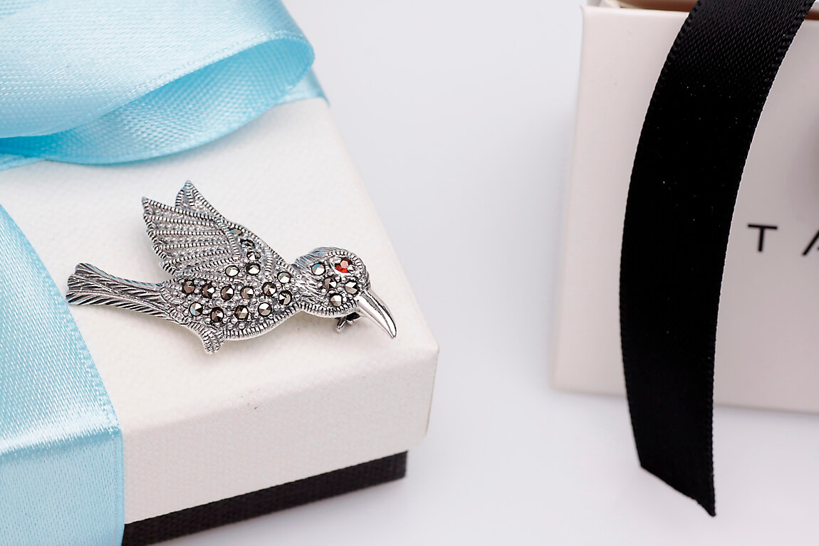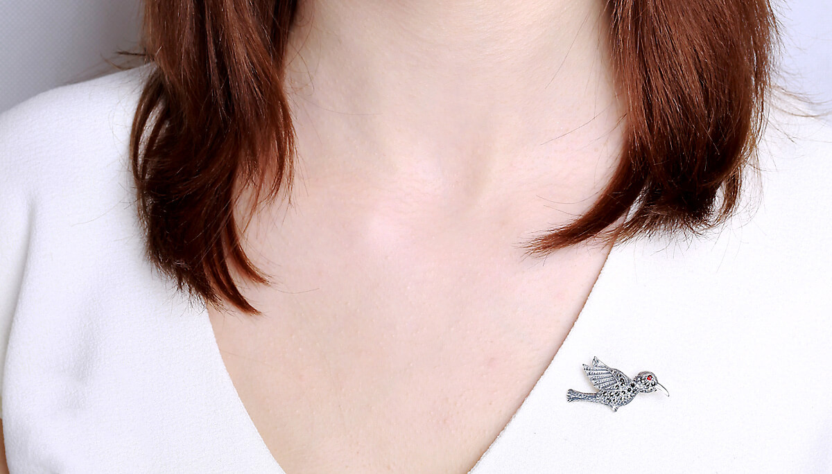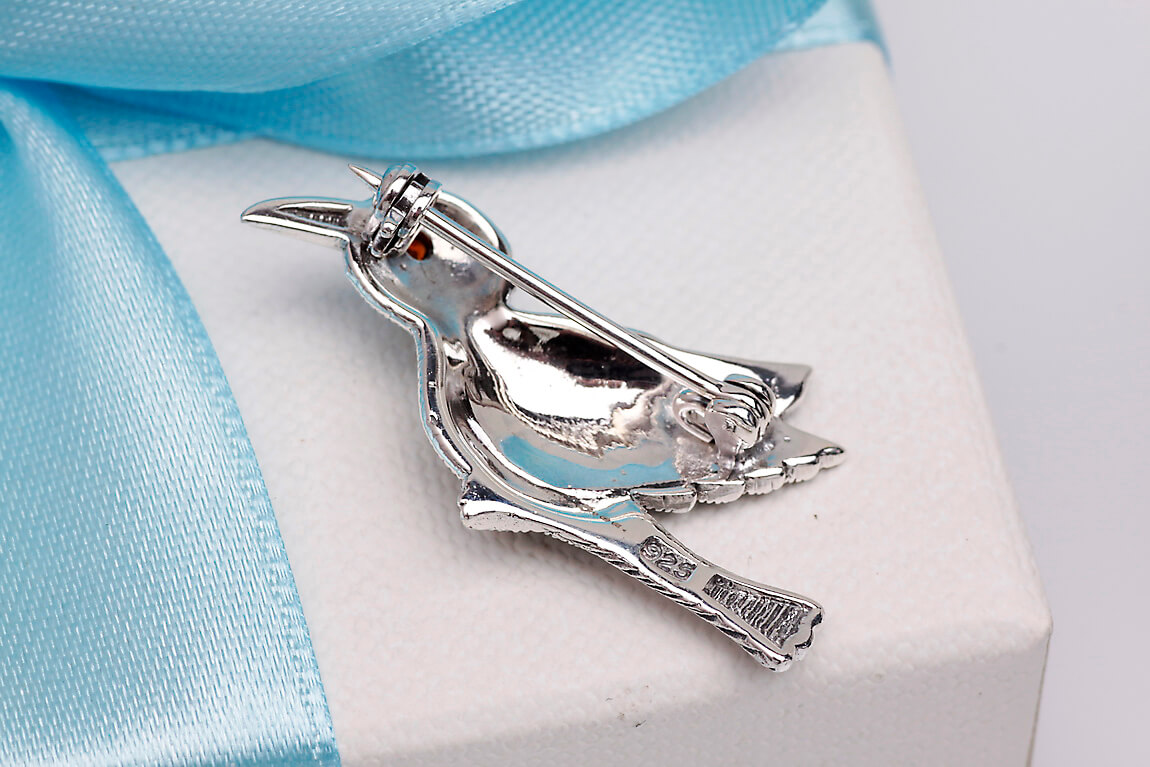 Pross hõbedast lind markasiitide ja granaadiga