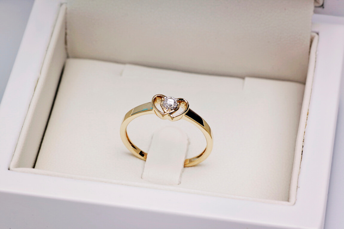 Õrn kollasest kullast (pr. 0,585) kihlasõrmus, mille keskmes on särav 0,20 ct briljant. Kivi on kinnitatud klassikalisse nelja kinnitusnupuga raami, mis rõhutab selle sära ja annab kogu ehtele ajatu soliidsuse. Peenike sõrmus lisab kergust, muutes sõrmuse käel suurepäraselt esiletükkivaks. See on erakordne pakkumine, mis ühendab õrnuse ja moeka disaini – ideaalne emotsioonidest tulvil kihlumiseks.