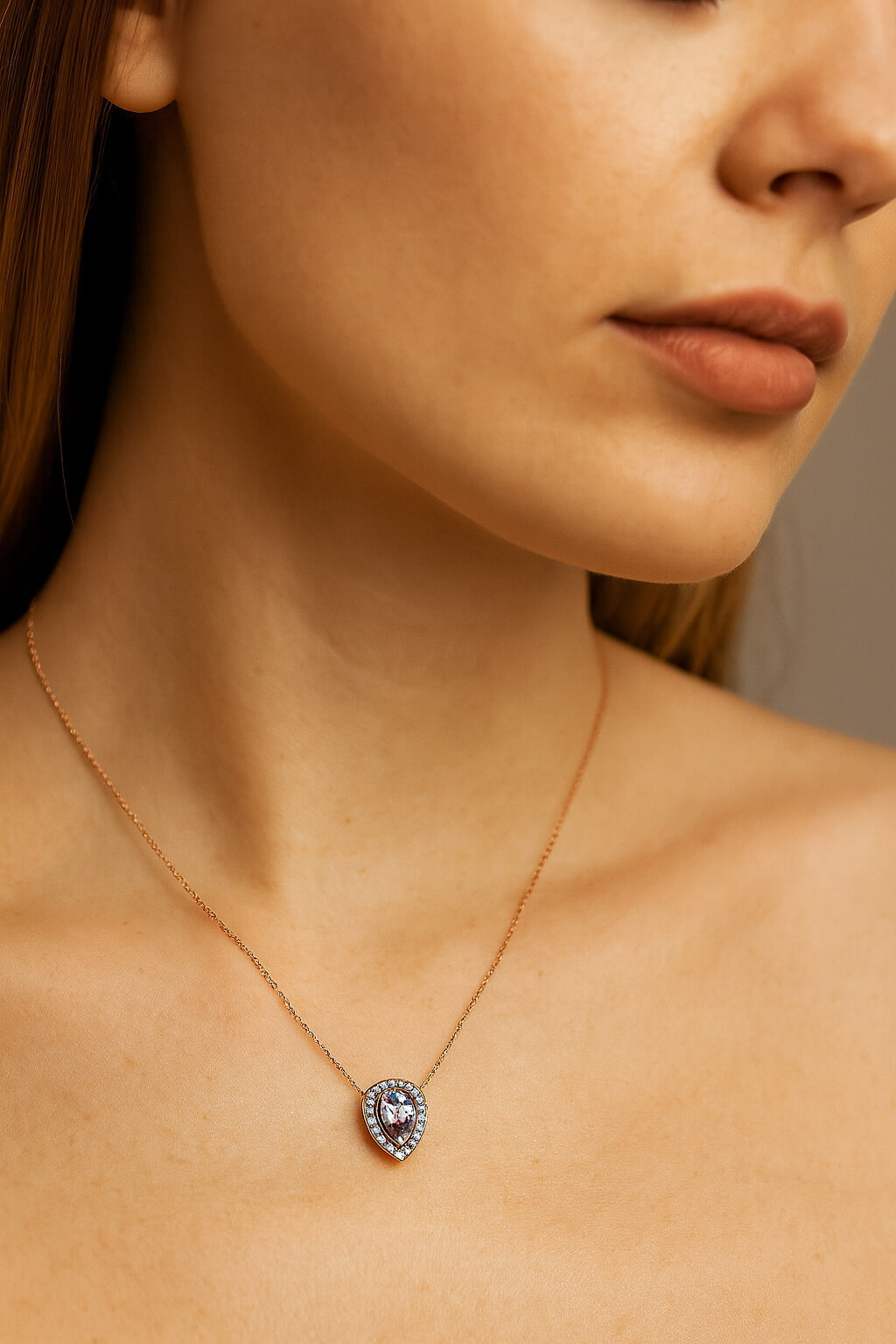 Ripats ametüsti ja teemantitega roosa kuld 585