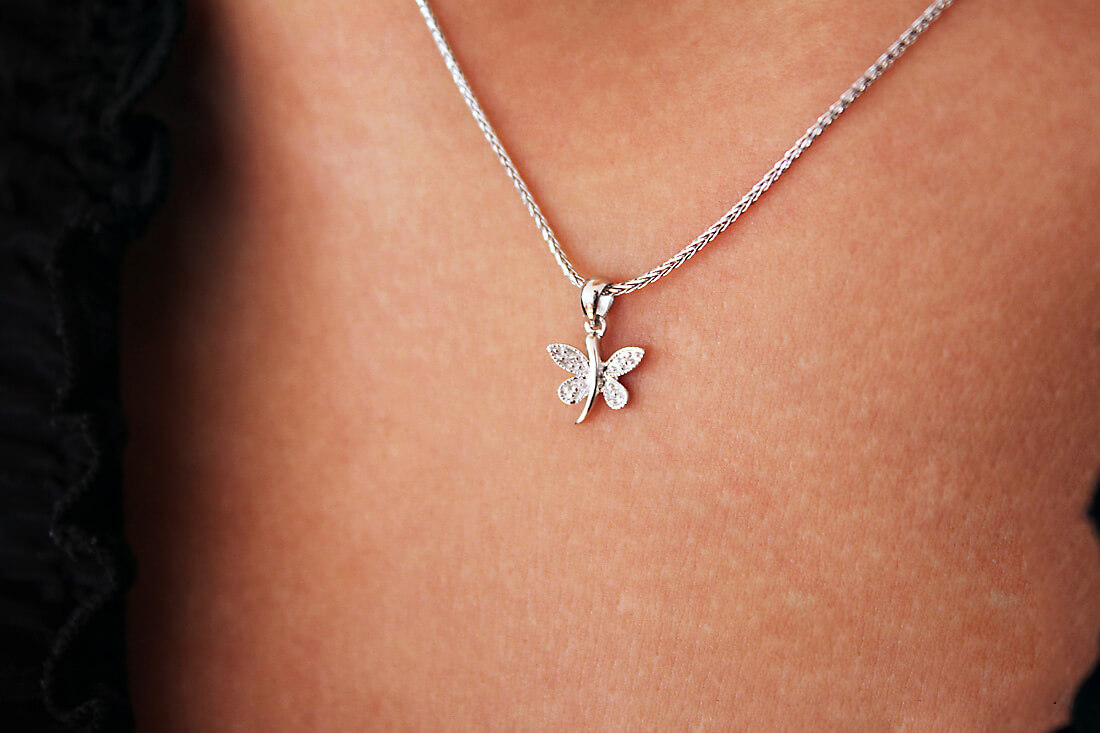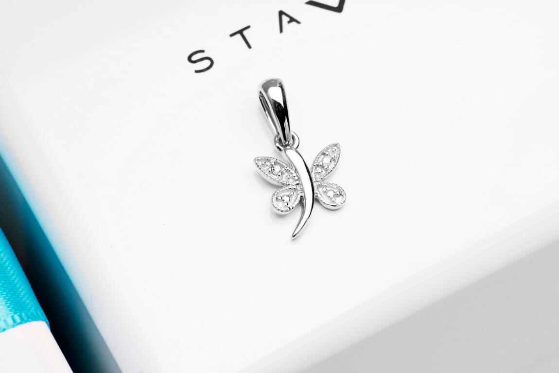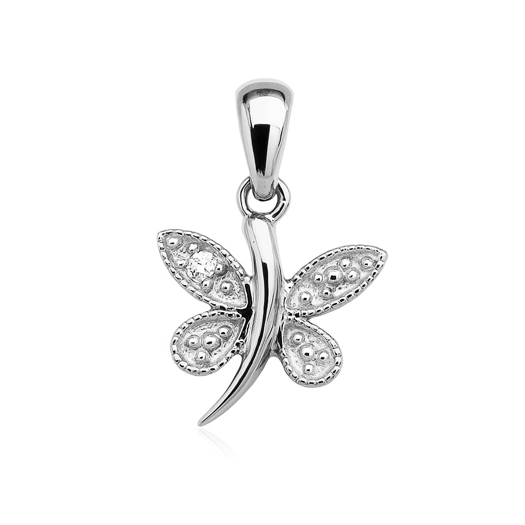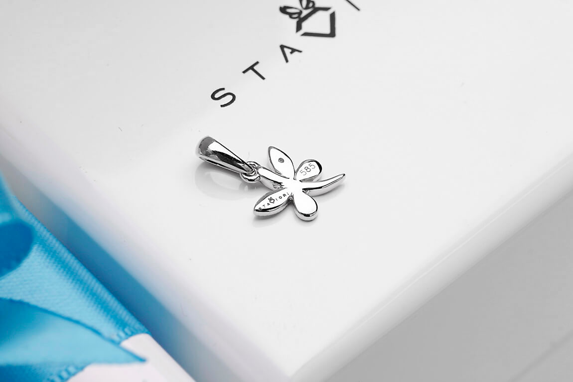 Ripats liblikas teemantiga valges kullas 585