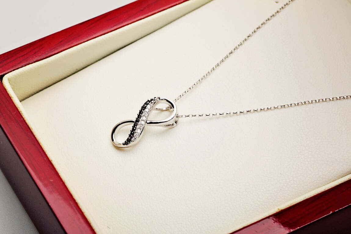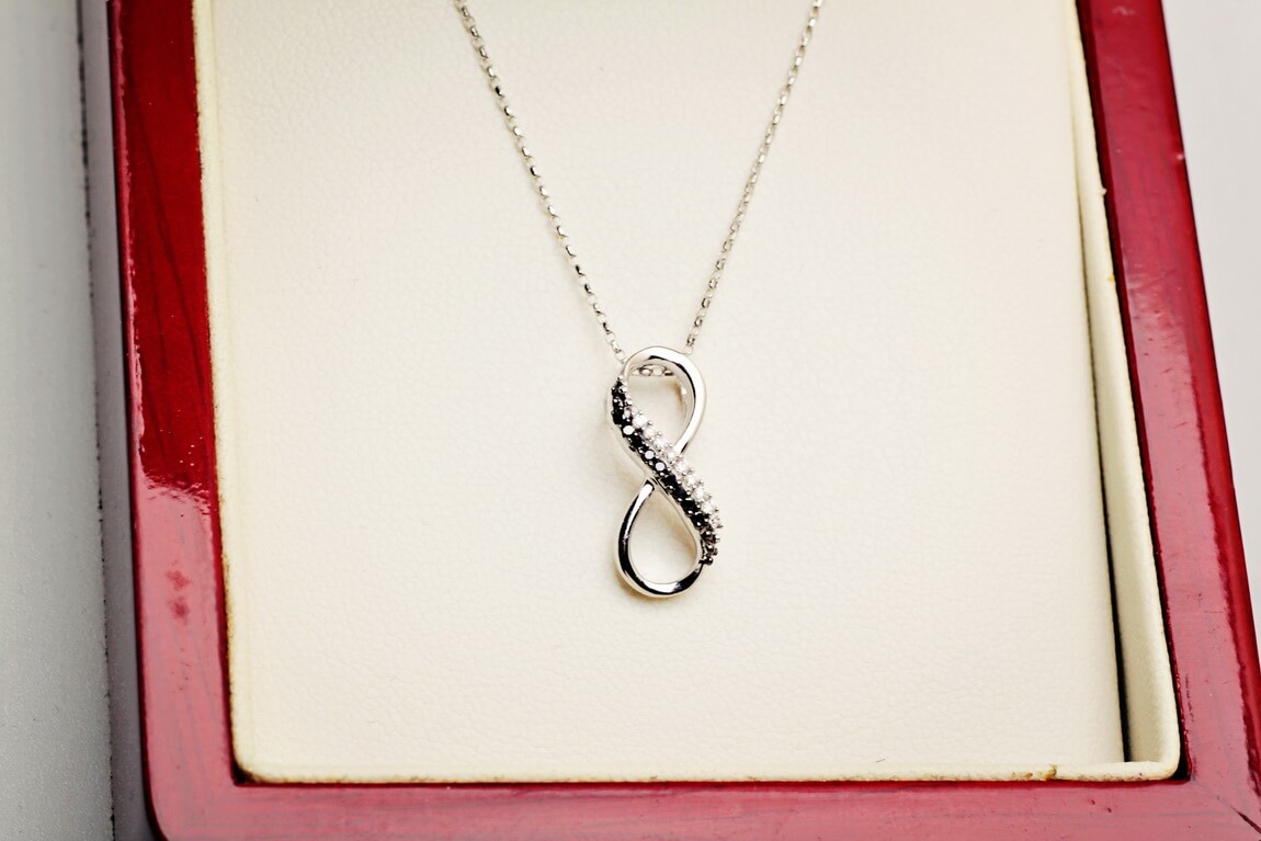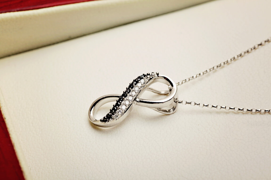 Ripats lõpmatusmärk valgete ja mustade teemantitega