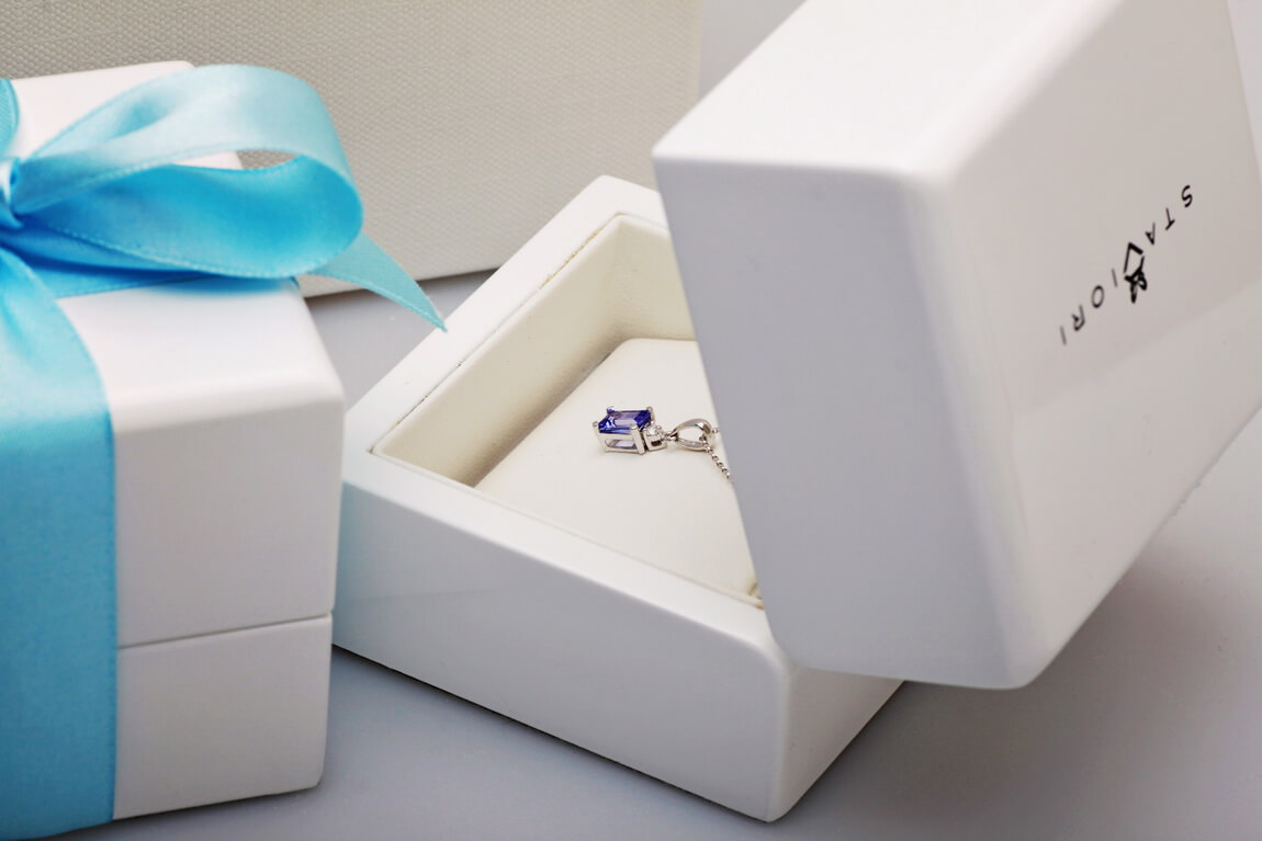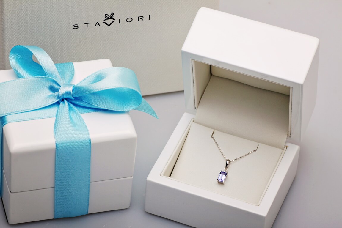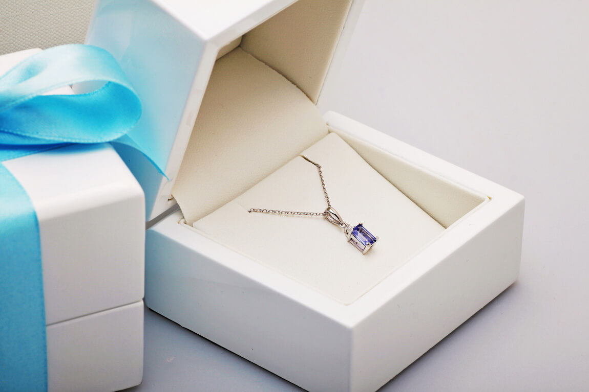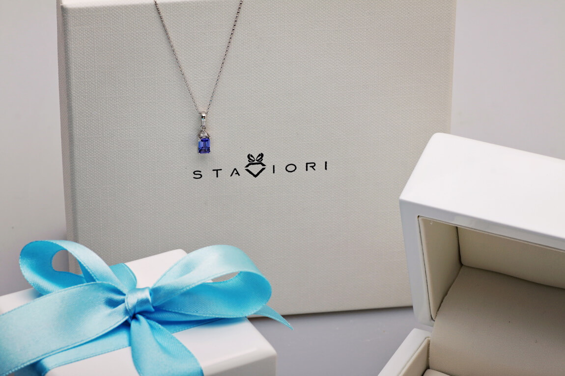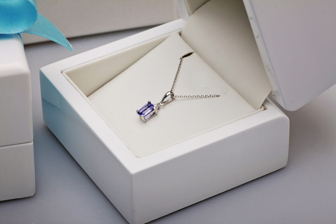 Valge kullaga ripats safiiri ja teemandiga