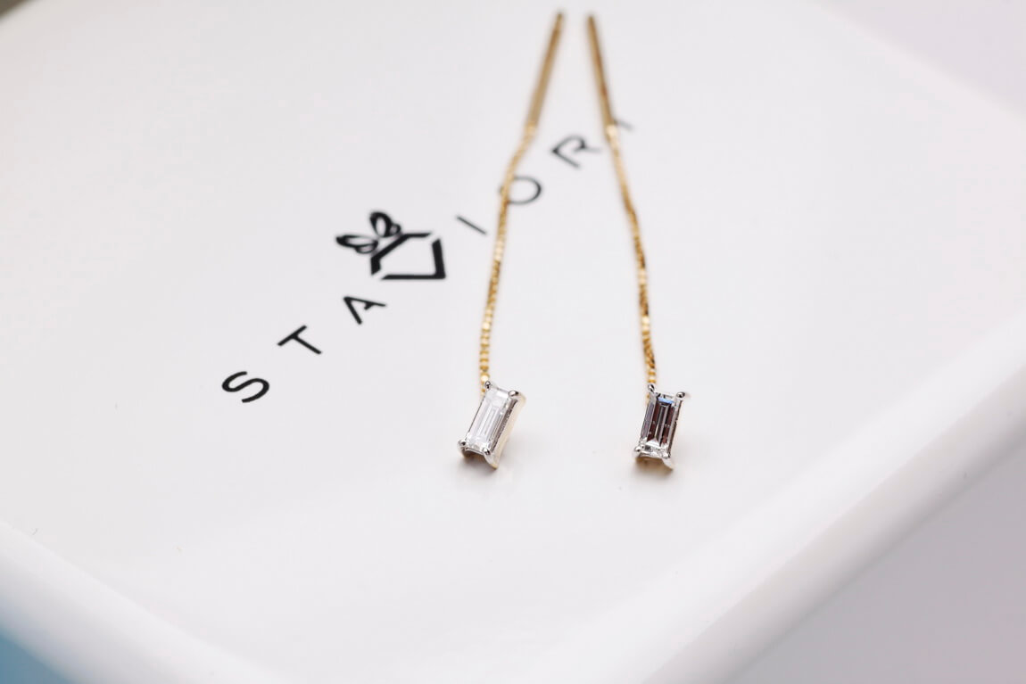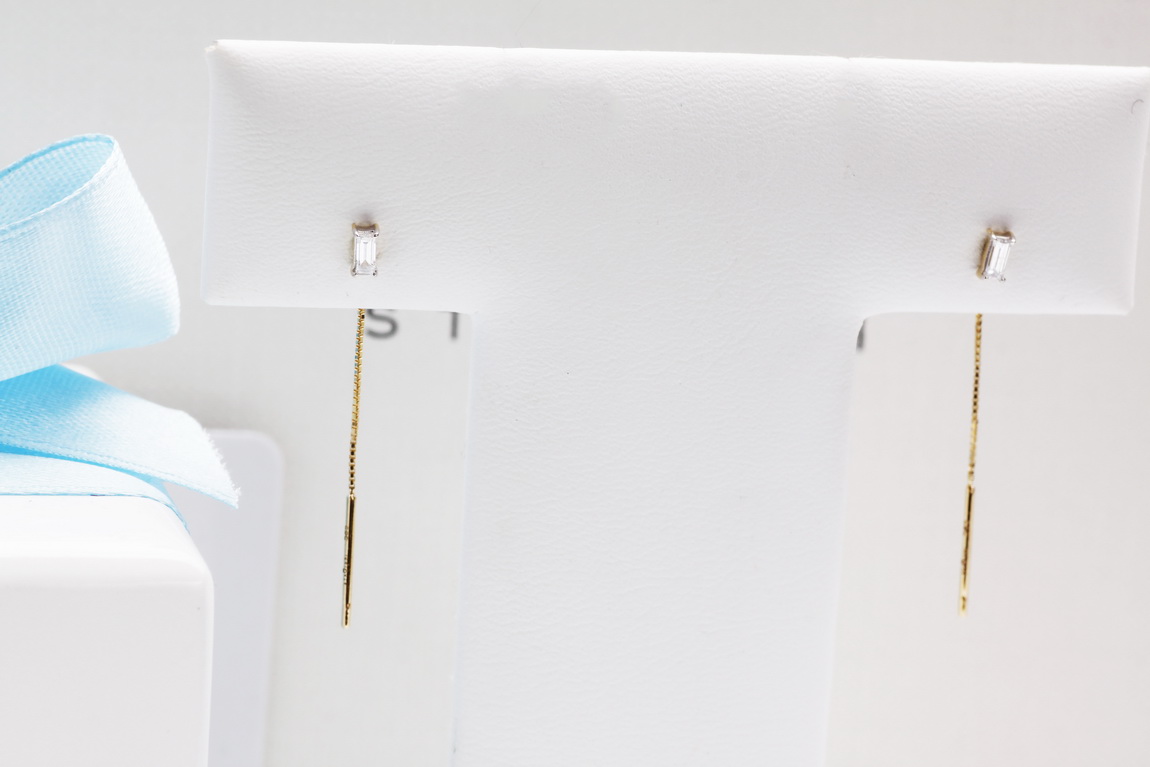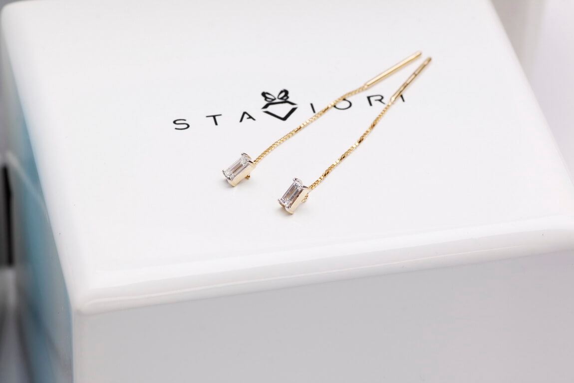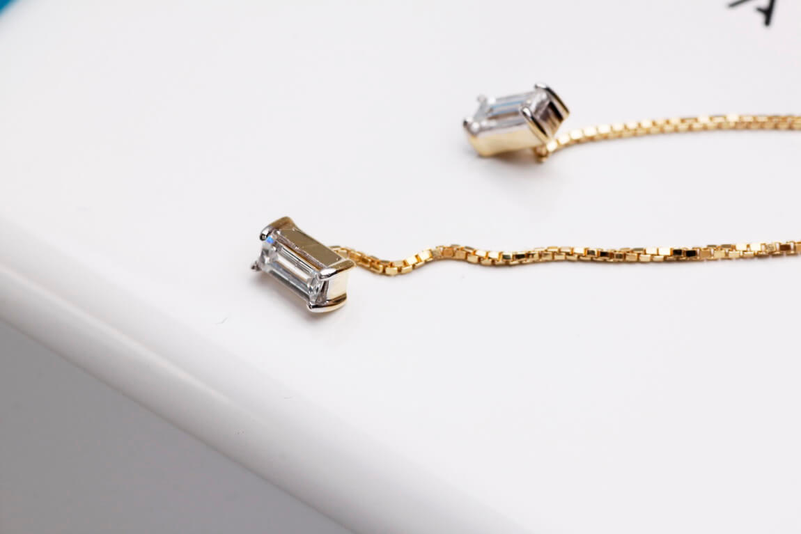 Rippuvad kõrvarõngad baguett-lõikeliste teemantidega