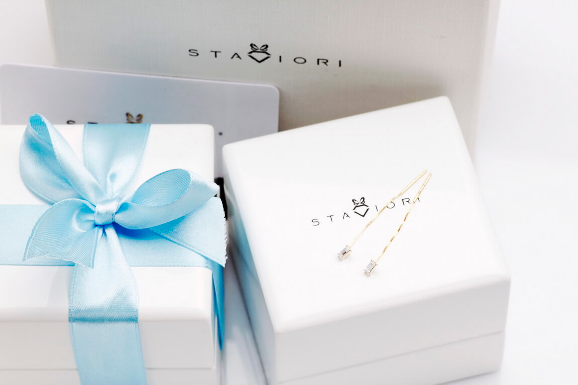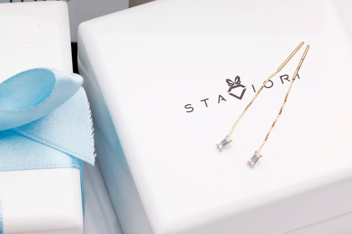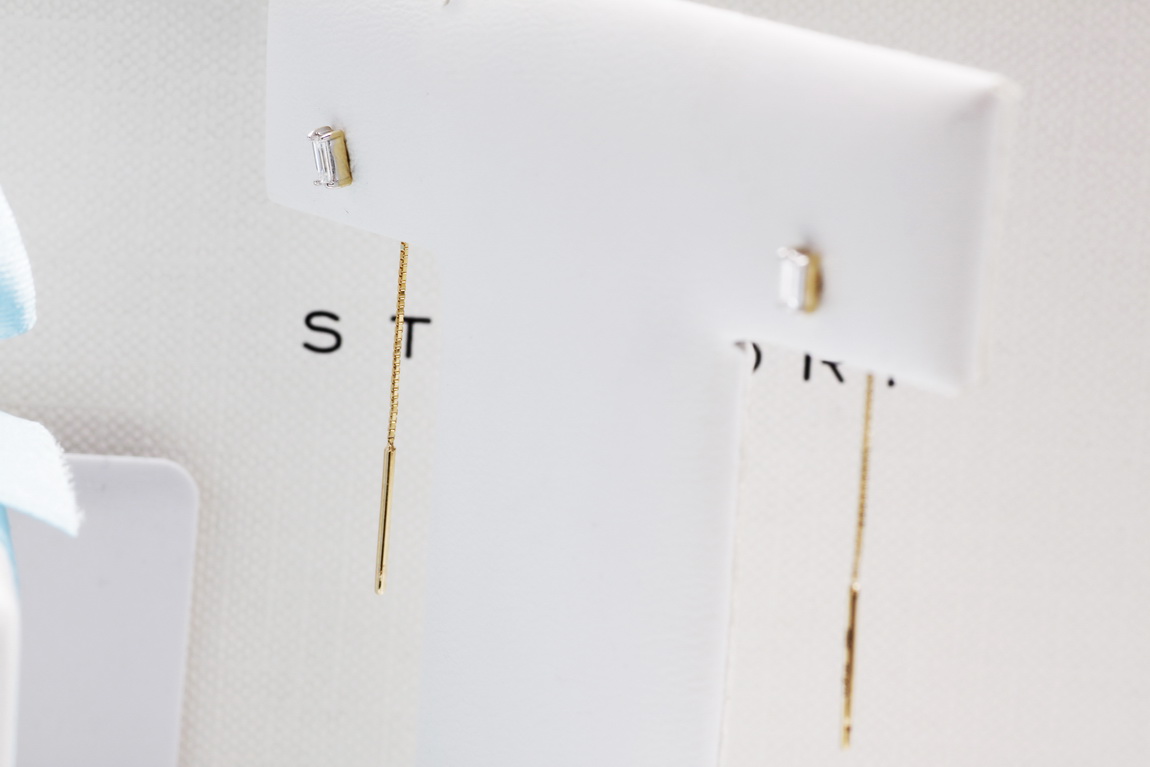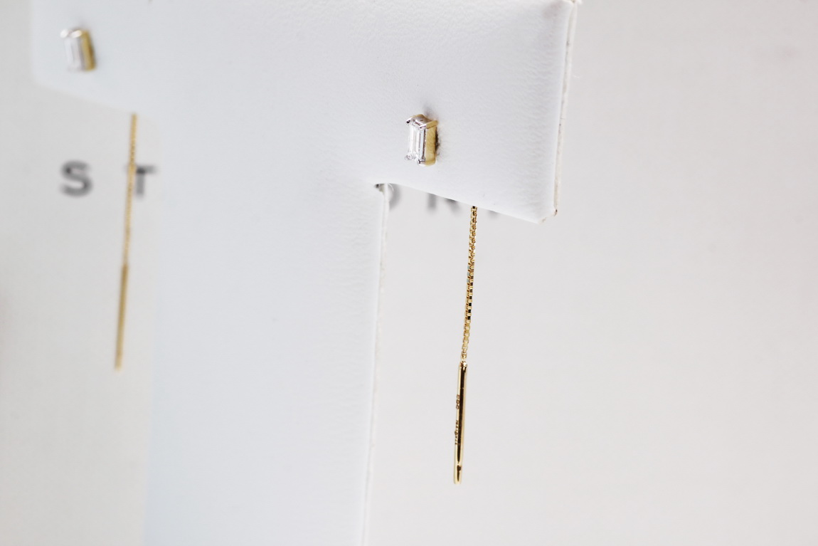 Rippuvad kõrvarõngad baguett-lõikeliste teemantidega