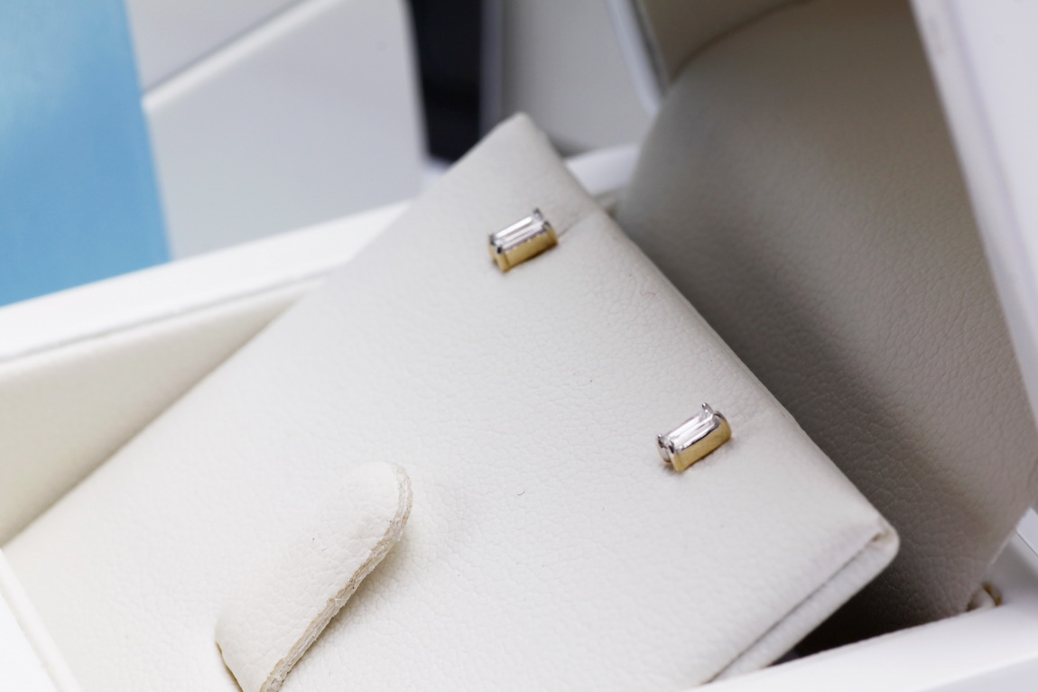2 Teemanti, baguett-lõikega, kaaluga 0,12 ct, värvus H, puhtus I1.