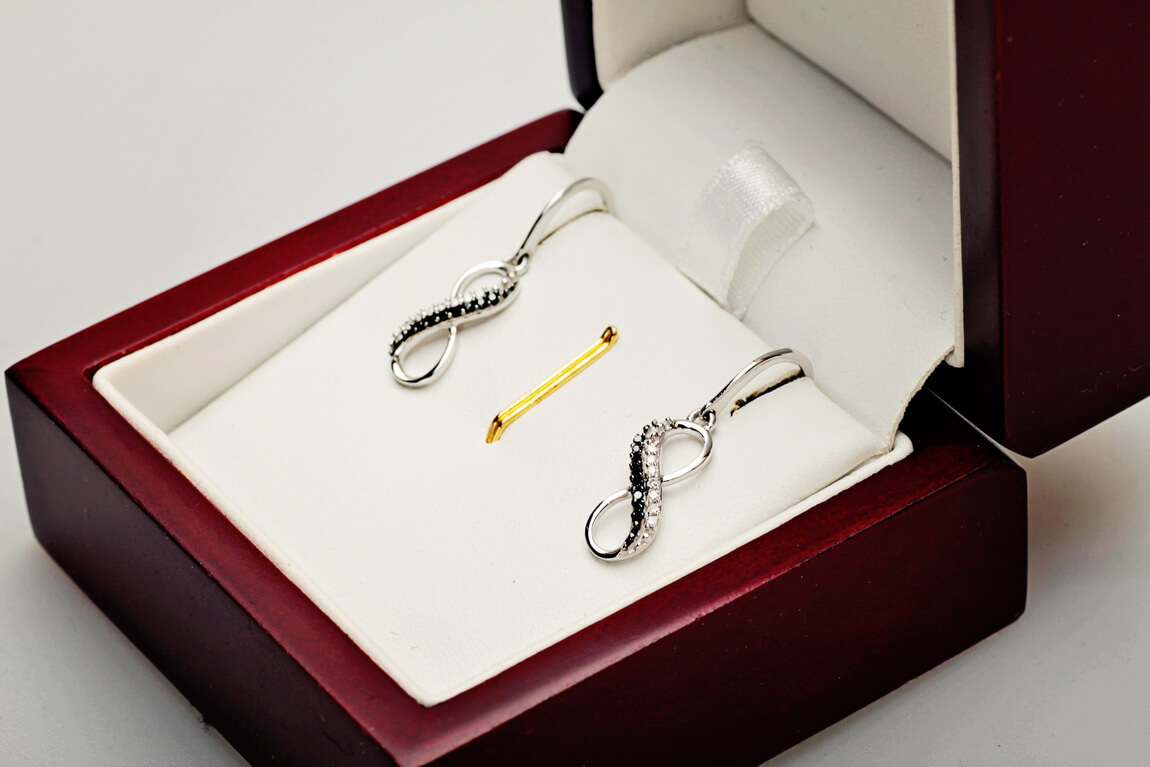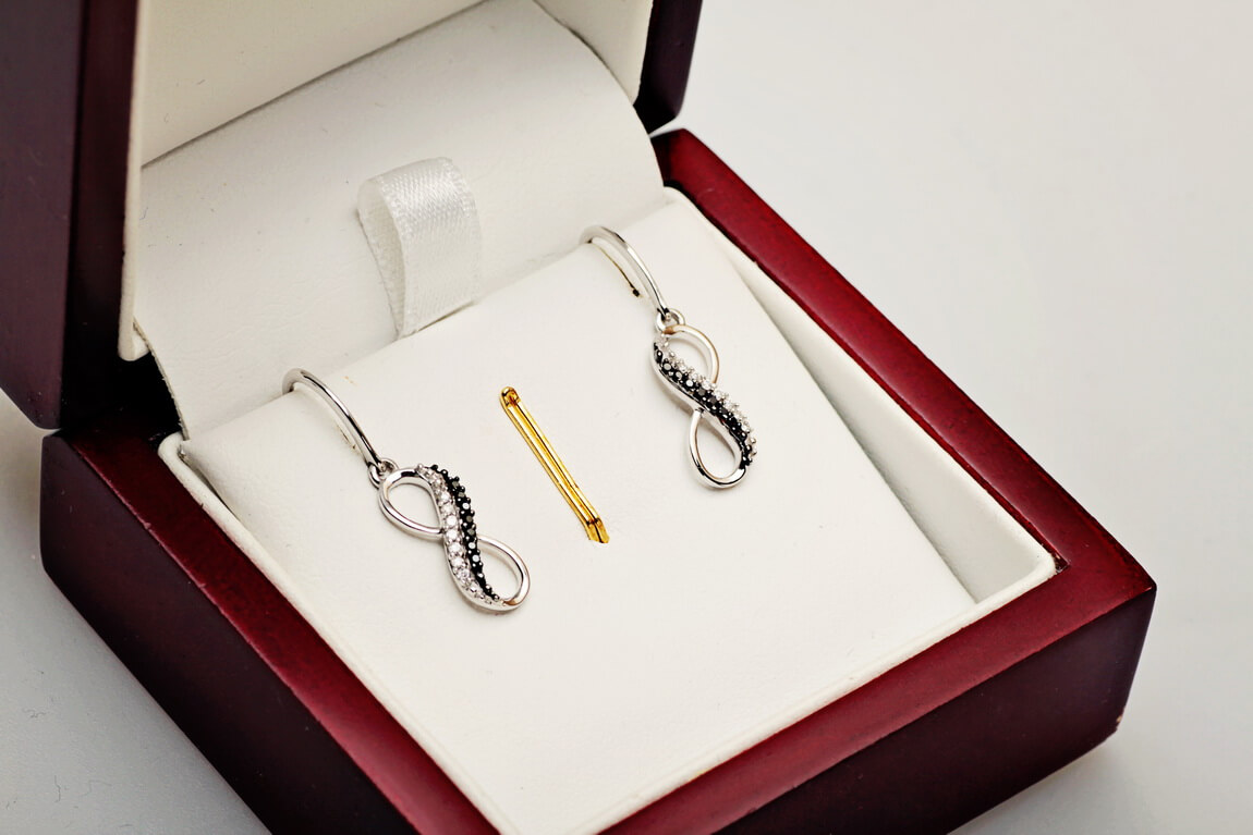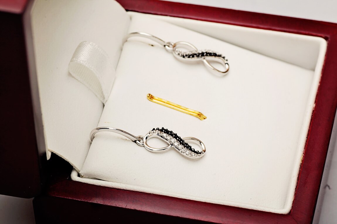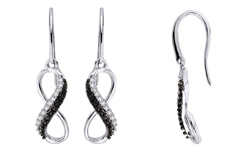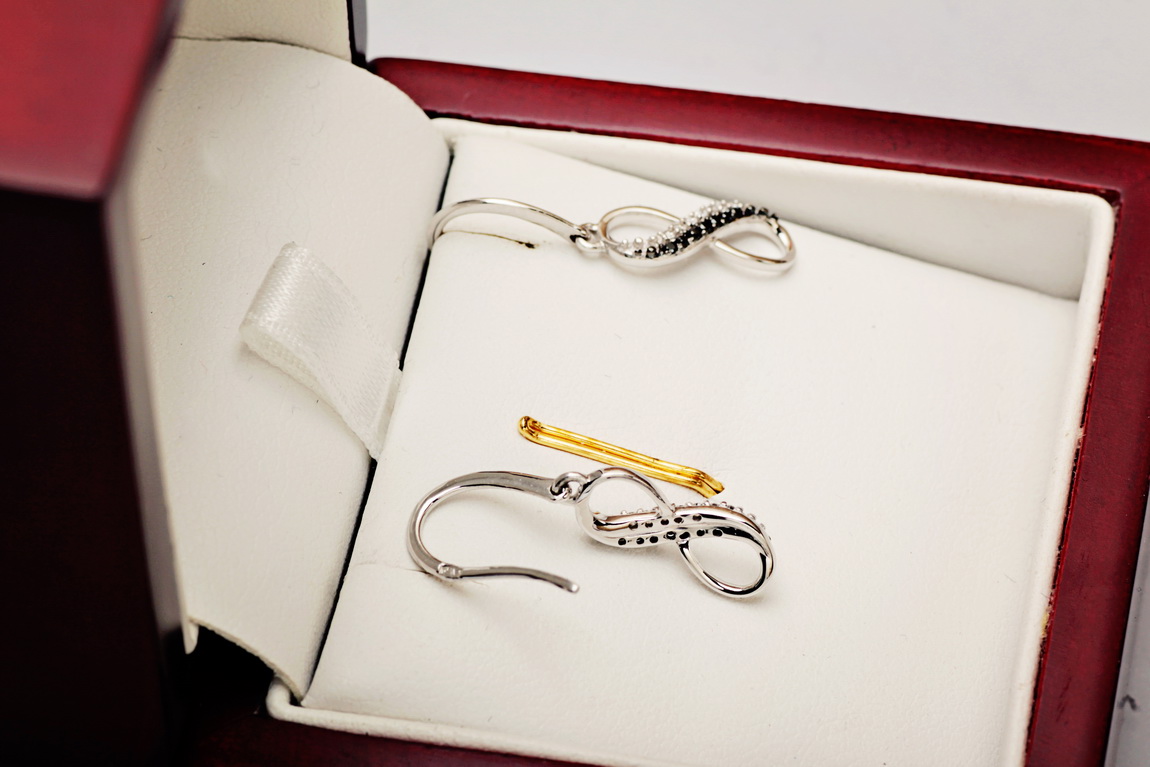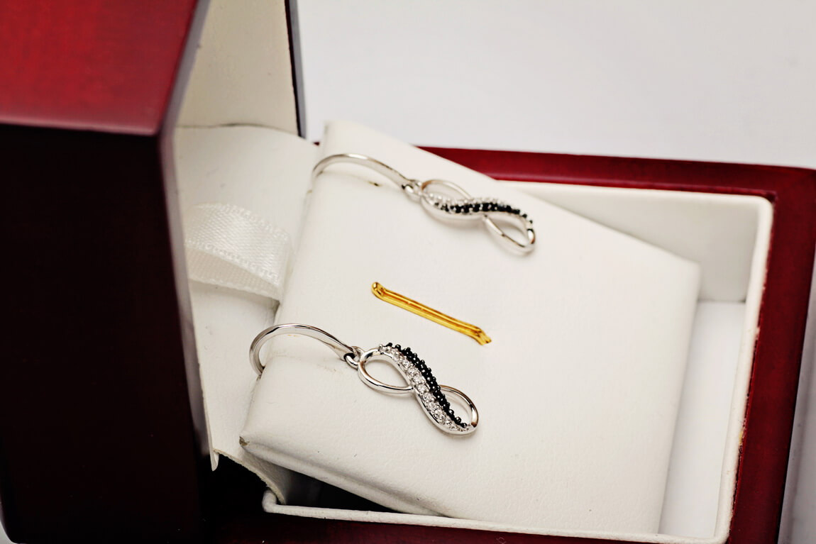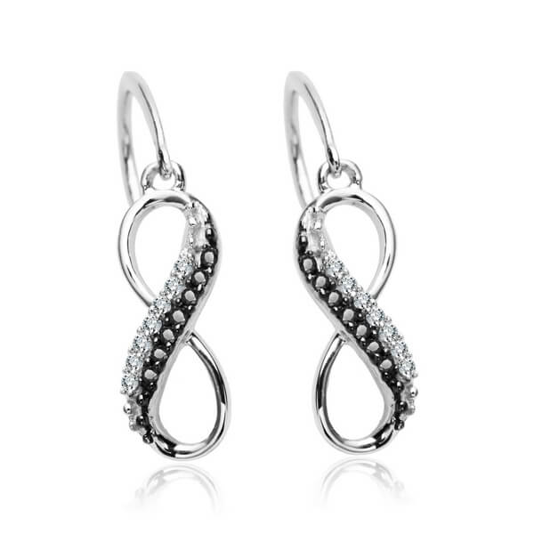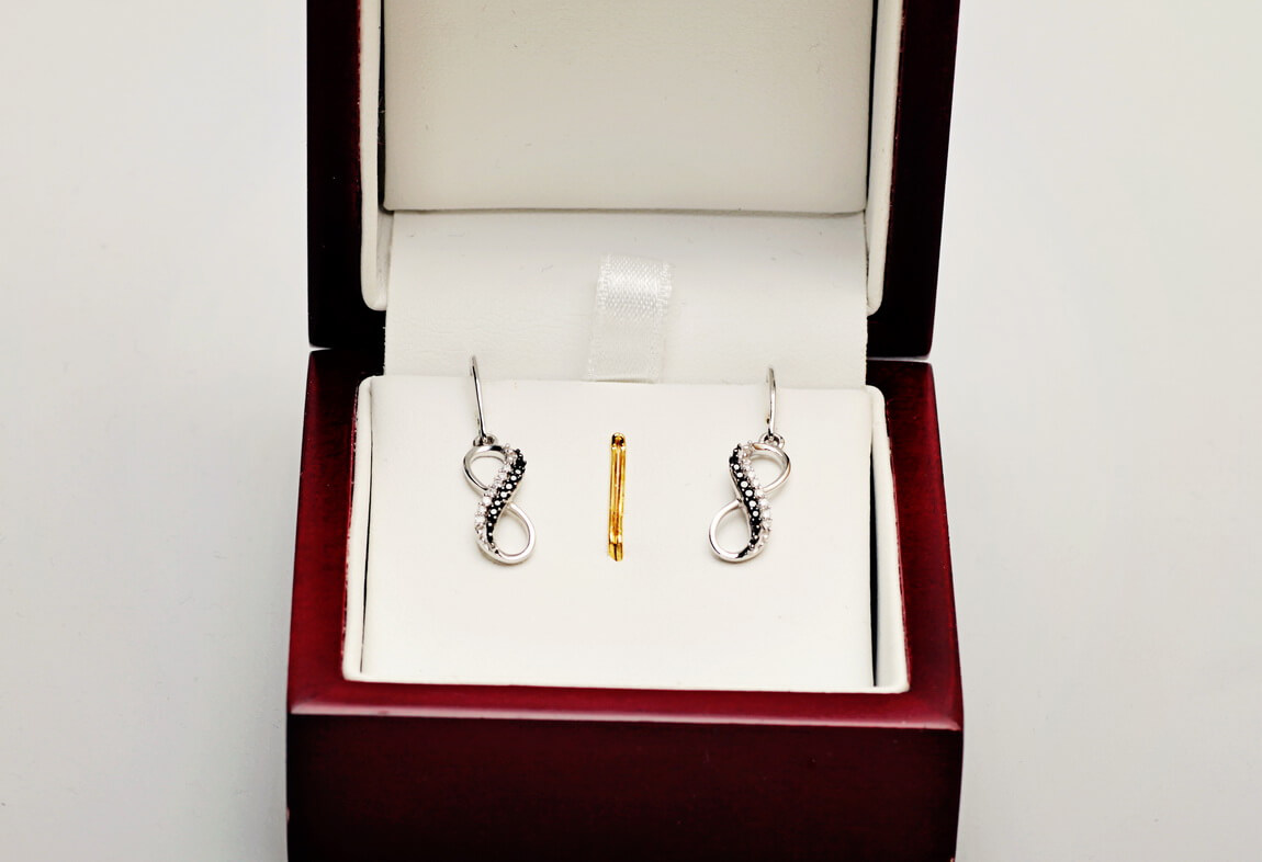 Rippuvad kõrvarõngad valgest kullast mustade ja valgete teemantitega – KBD3873