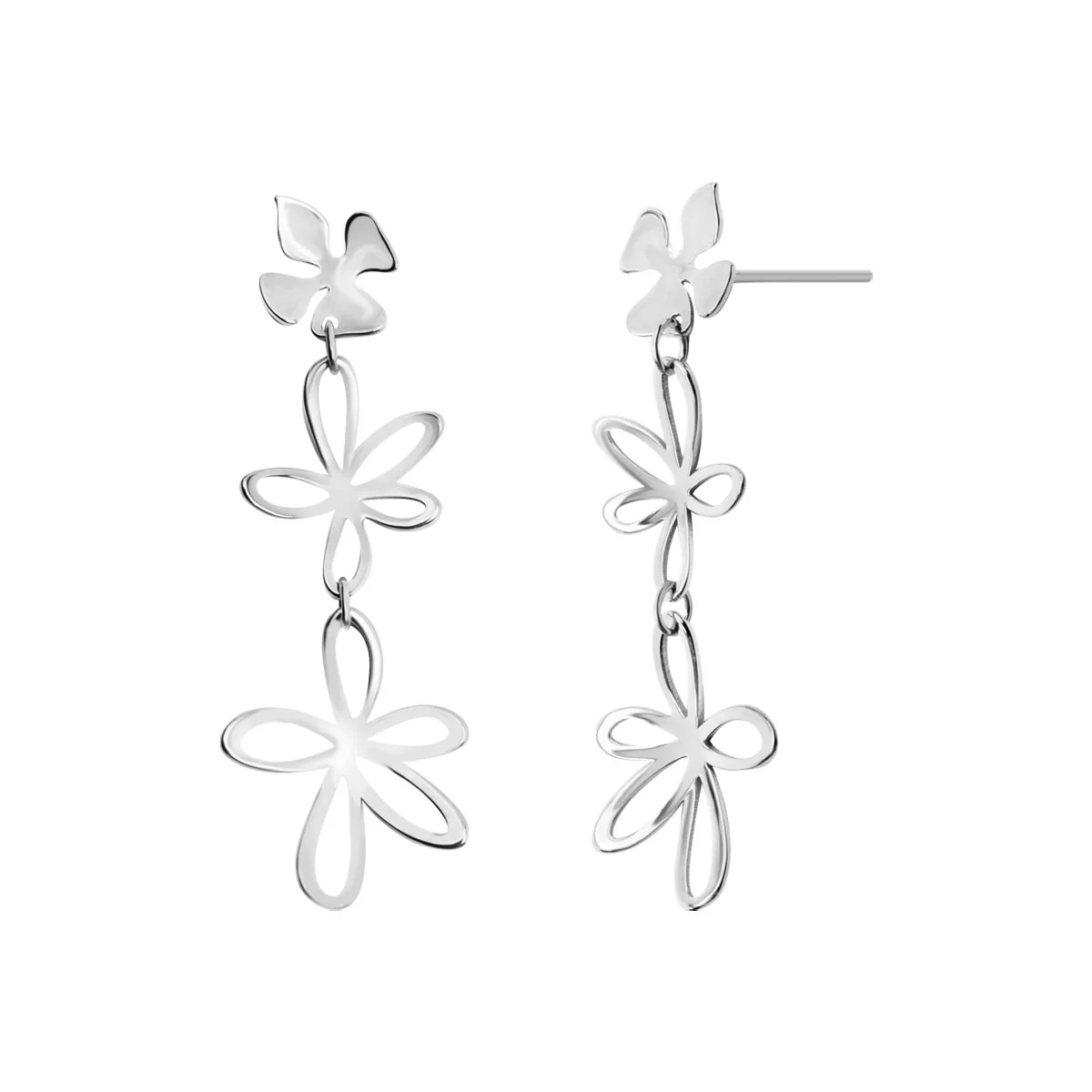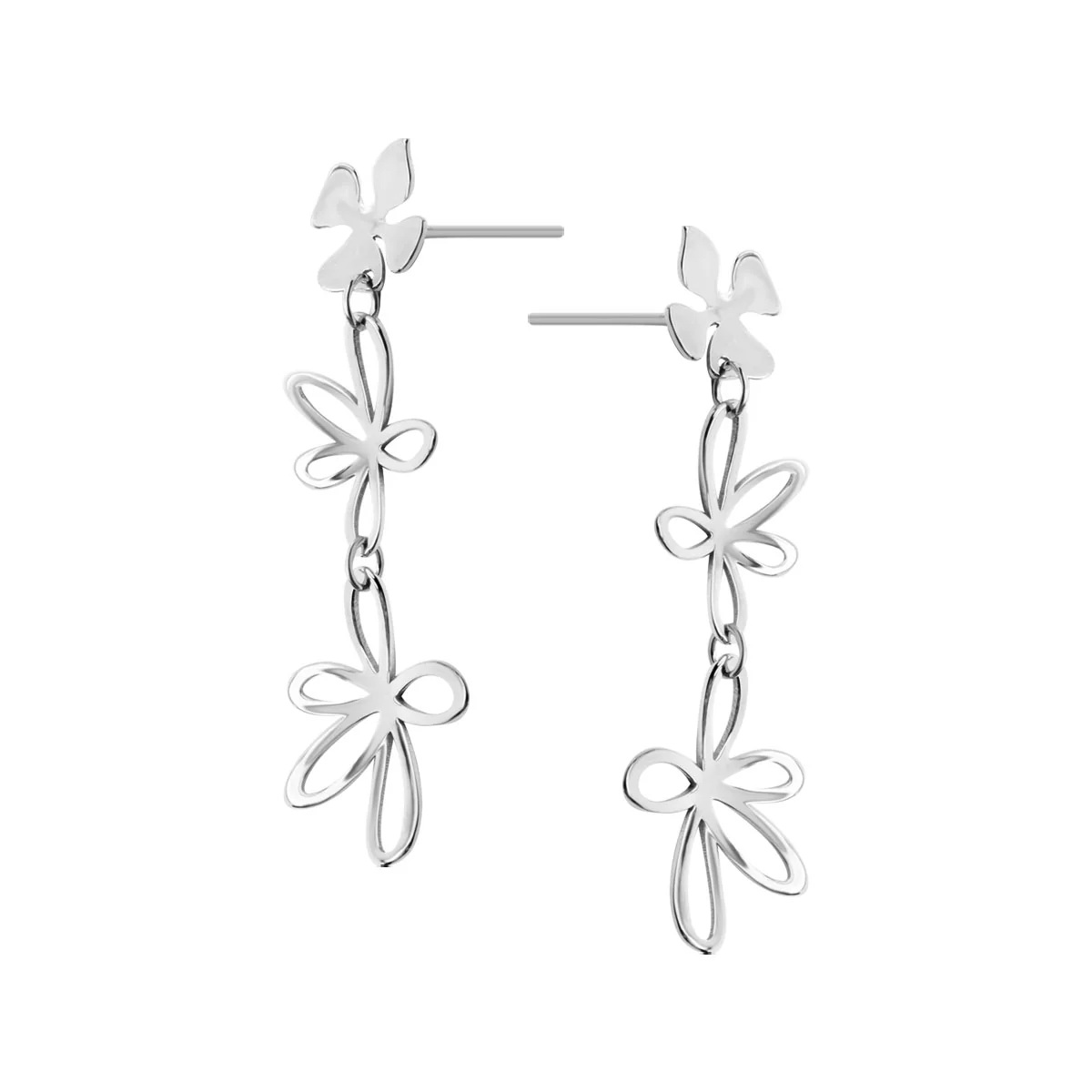 Rooditud hõbedased lillekujulised rippuvad kõrvarõngad KDK6608S