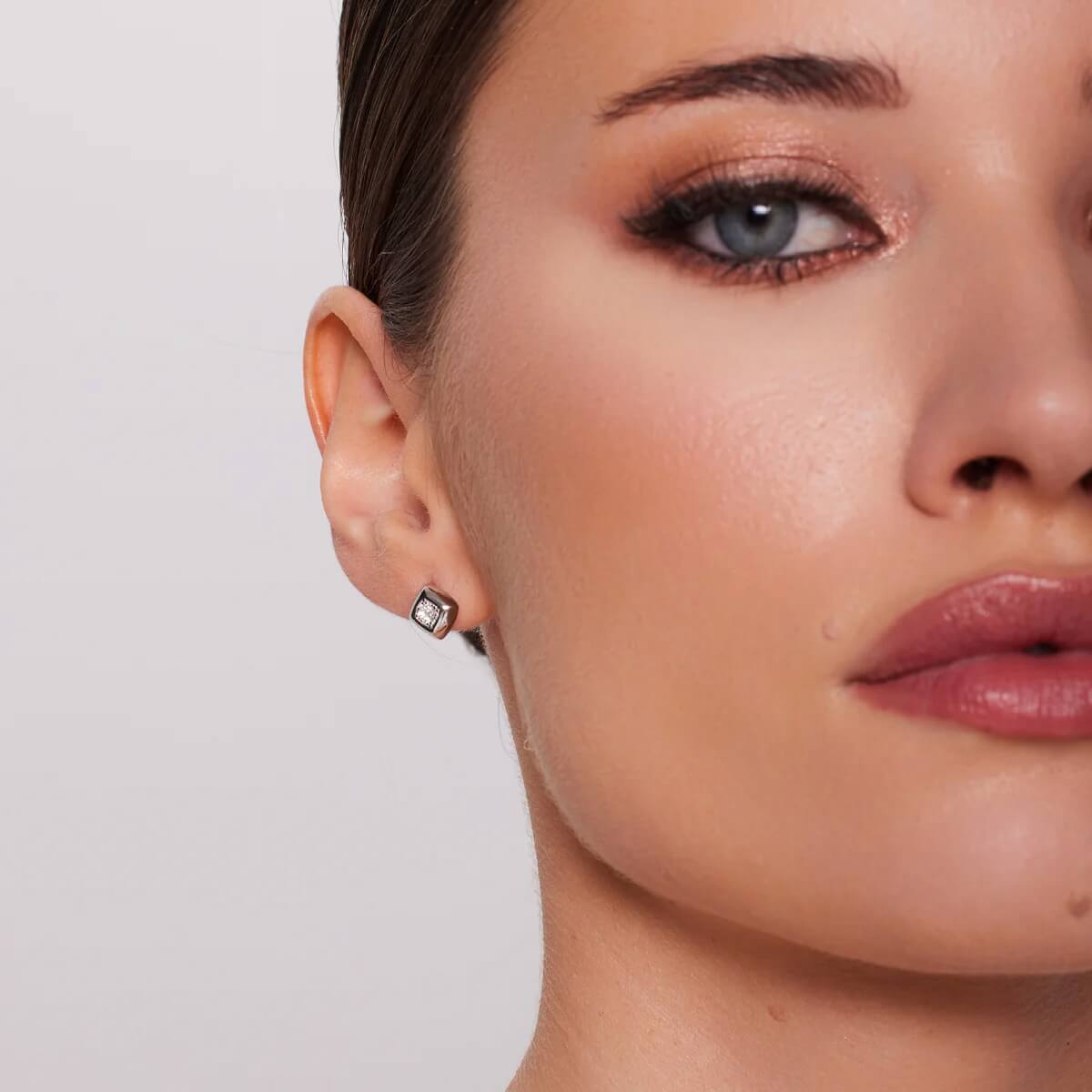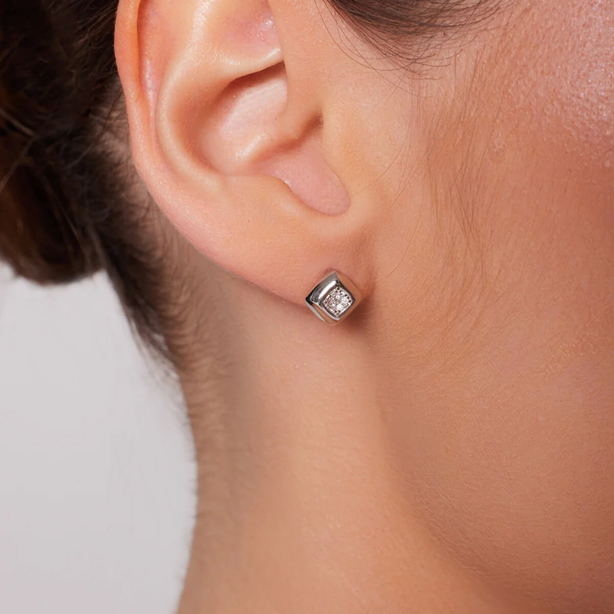 Ruudukujulised kõrvarõngad tsirkoonidega, hõbedast – KDK6589