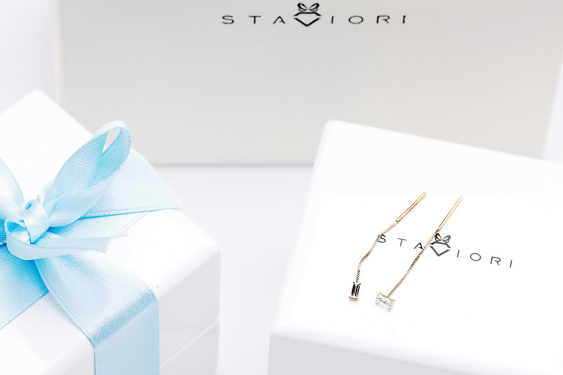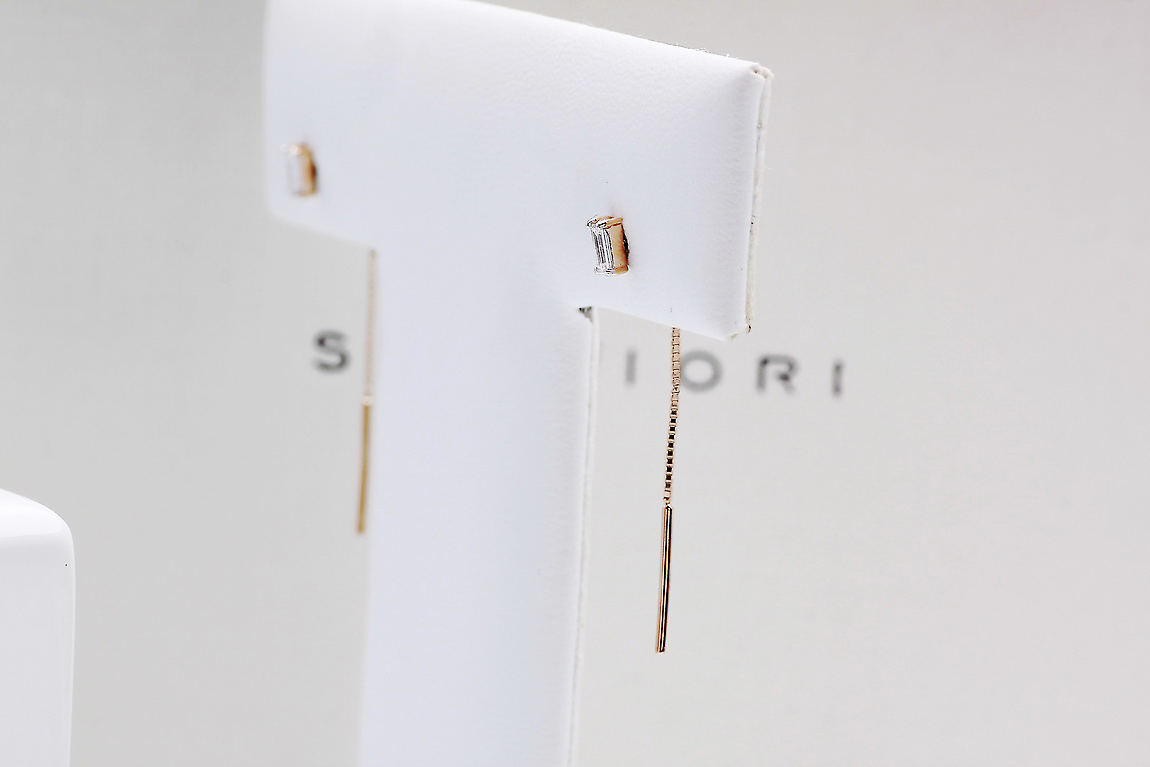 Staviori | rippuvad kõrvarõngad baguette-lõikeliste teemantitega roosas kullas 585