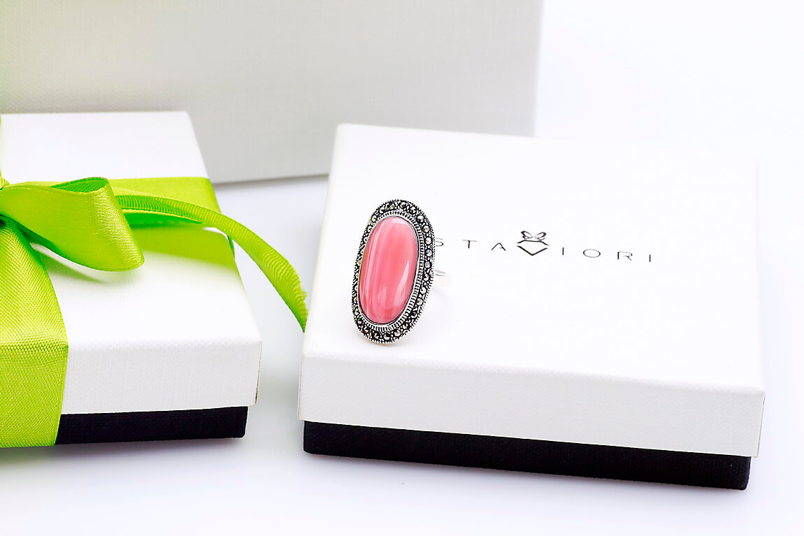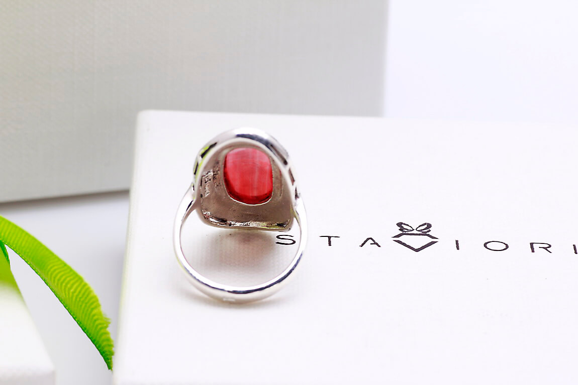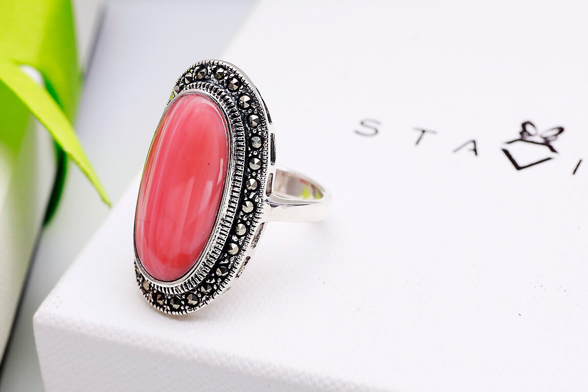 Suur hõbedast sõrmus koralli ja markasiitidega
