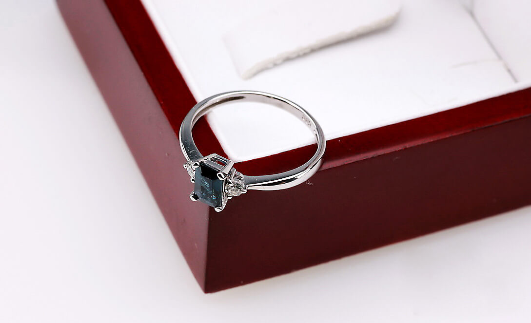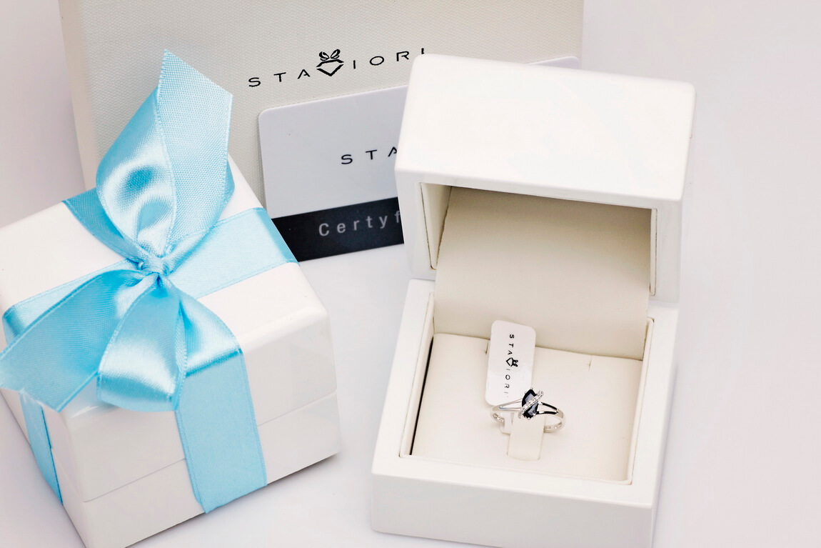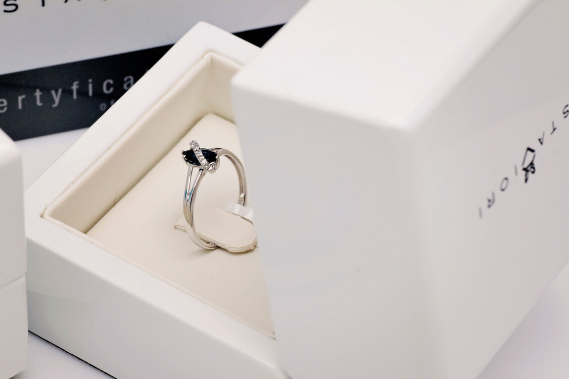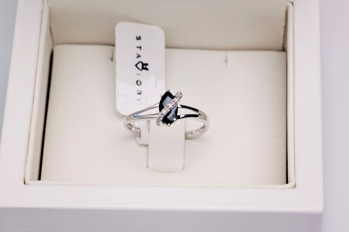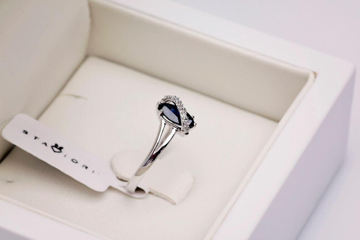 Valgest kullast sõrmus saphire’i ja briljantidega