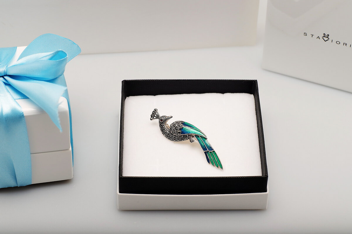 hõbedast pross - kiil - emailiga ja markasiitidega